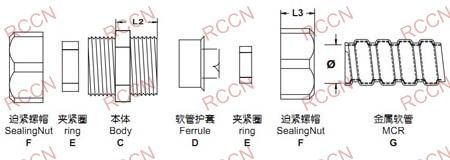 | Material:C.F are made from zinc coated metal.E are made of NBR.Dis made of iron sheet. Certificates:CE RoHS Special thread can be produced |