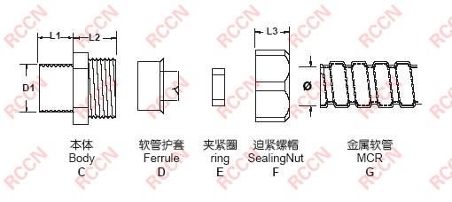 配套日成金屬軟管MCR | 螺紋外徑 Thread O.D. D1 |