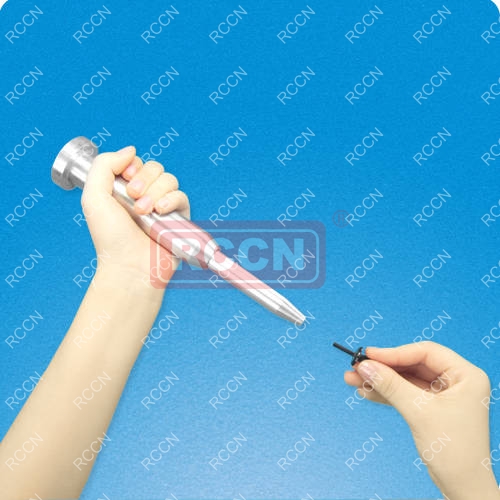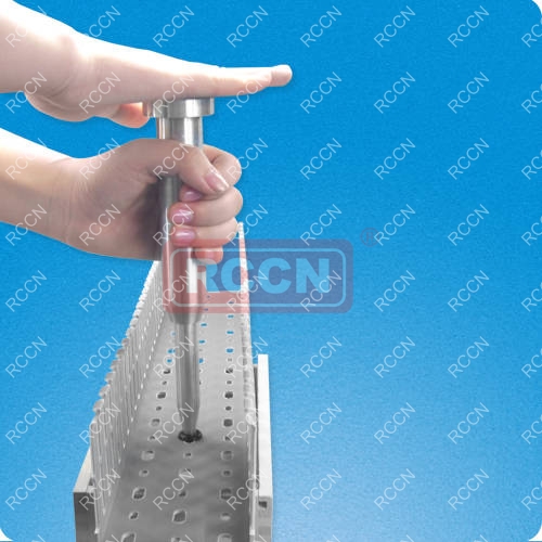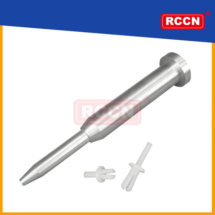 材質:鋁合金 用法:將鉚釘插入線槽孔,槍頭推入鉚釘柱打入即可 特點:取代傳統螺絲固定,縮短安裝時間.